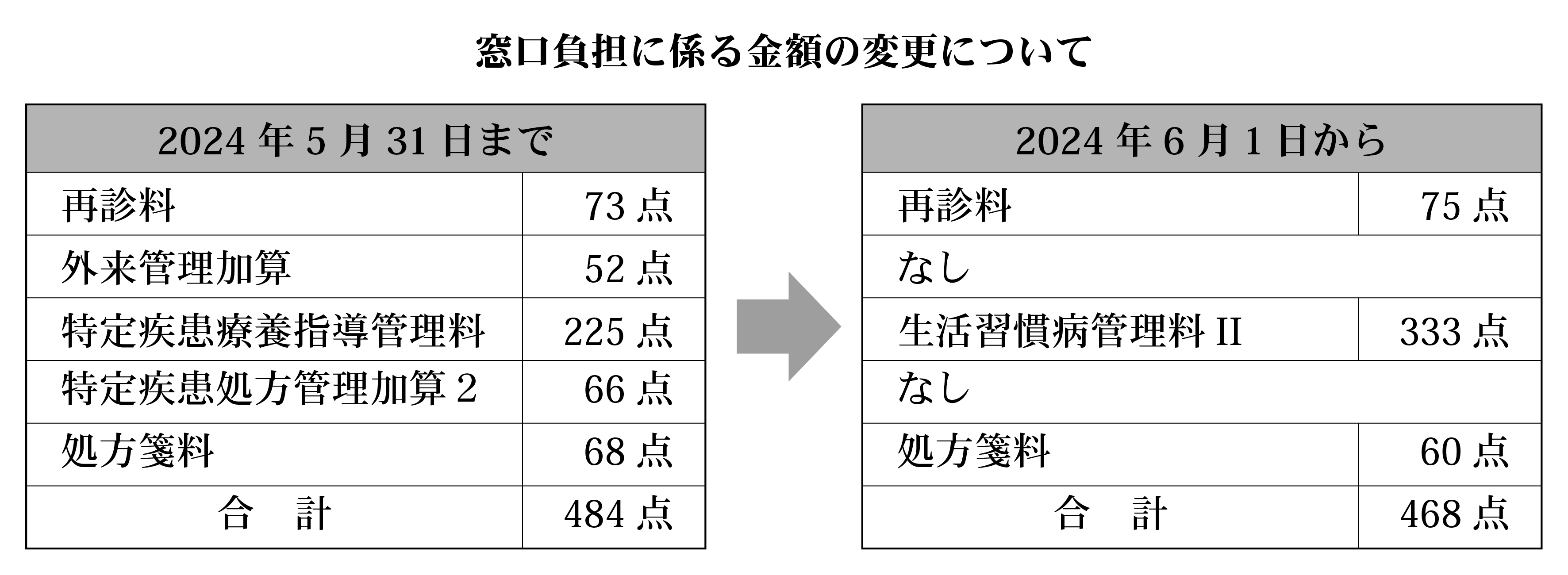 窓口負担についても、これまでの金額から変更があります(以下の表参照)。ご理解、ご協力お願い致します。