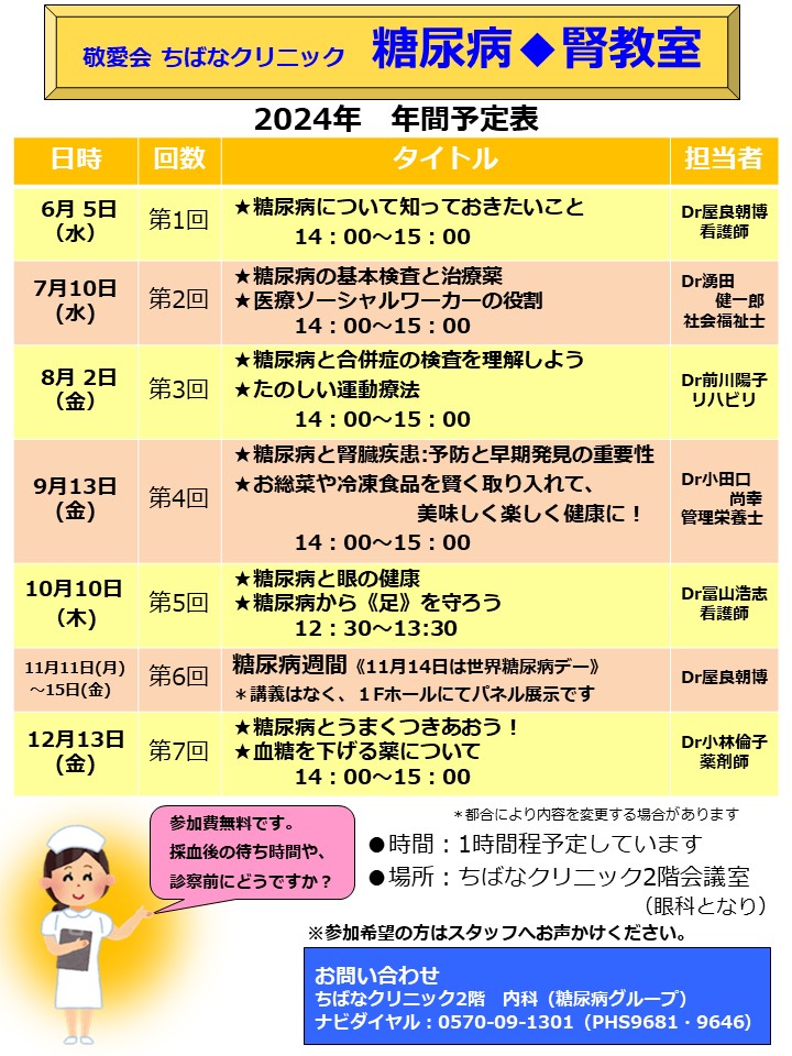「2024年 糖尿病◆腎教室」のテーマとスケジュール